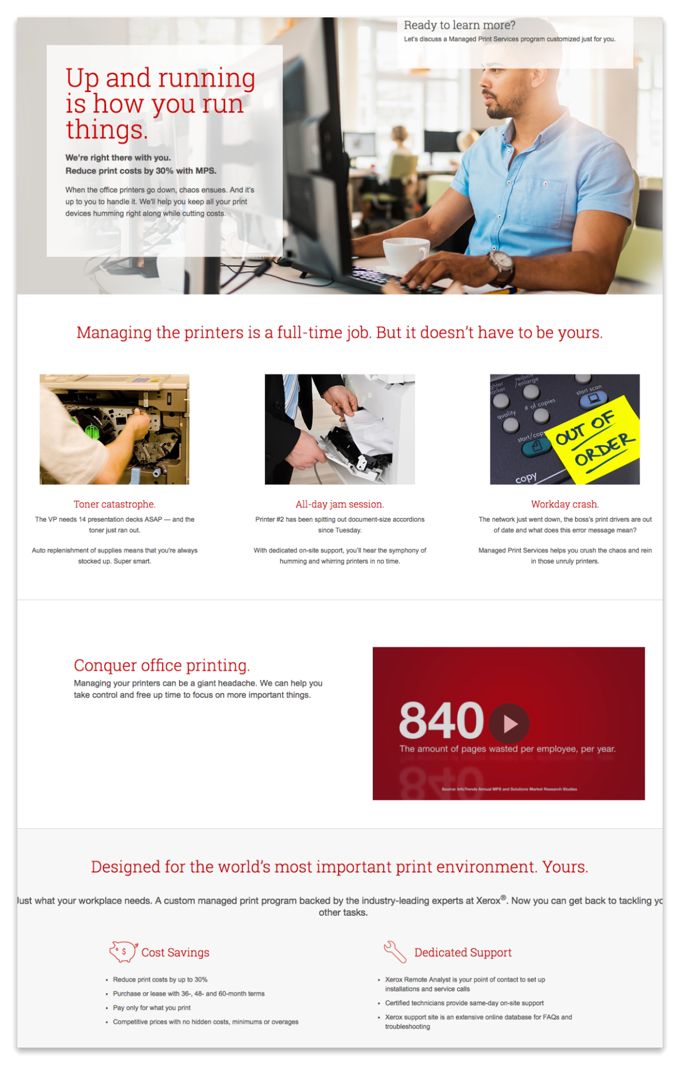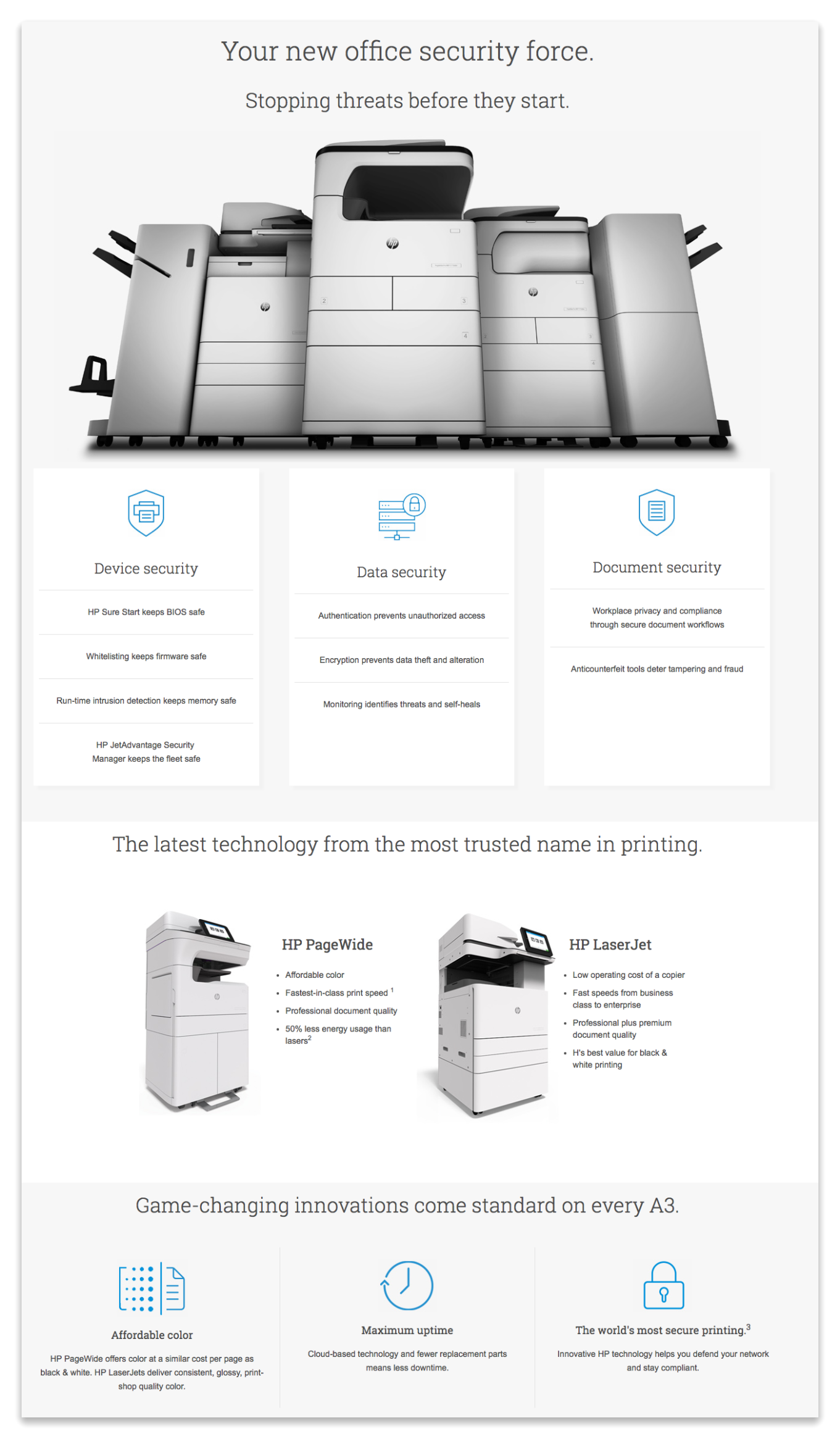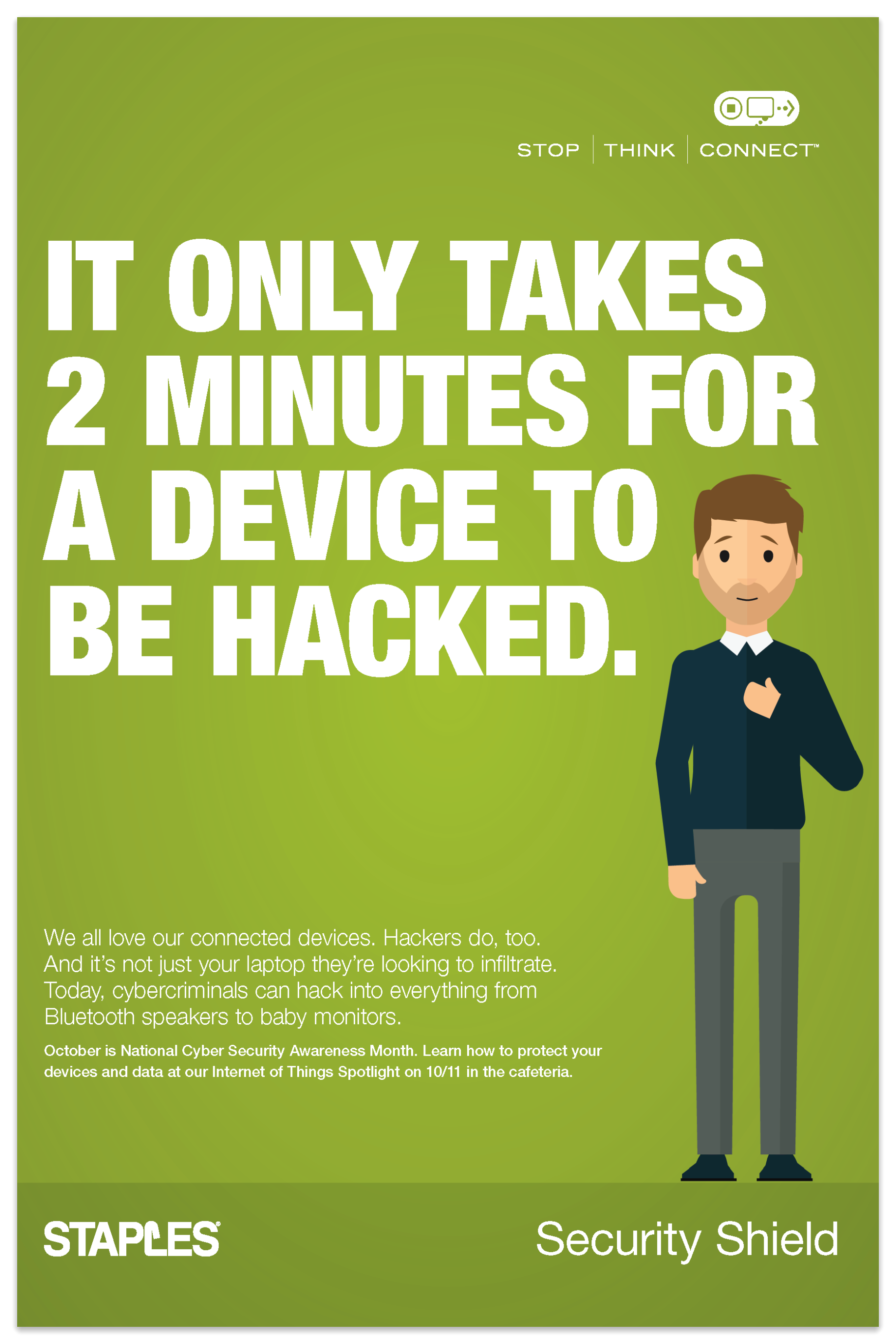 We partnered with Xerox and HP to spotlight different parts of the tech security story through email, digital banners, lead gen pages and direct mail. We also created a series of posters for Staples corporate HQ to educate associates on the dangers of being hacked.